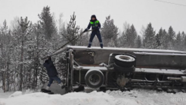 Автоинспекторы оказали помощь водителю грузовика на загородной автодороге в Ямало-Ненецком автономному округе