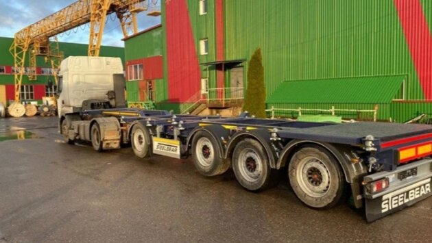 ВОМЗ выпустил универсальный контейнеровоз-полуприцеп Steelbear PD-41N с поднимаемой платформой для перевозки контейнеров. Конструкция адаптирована для тягачей марок Volvo, Iveco, Mercedes и других.