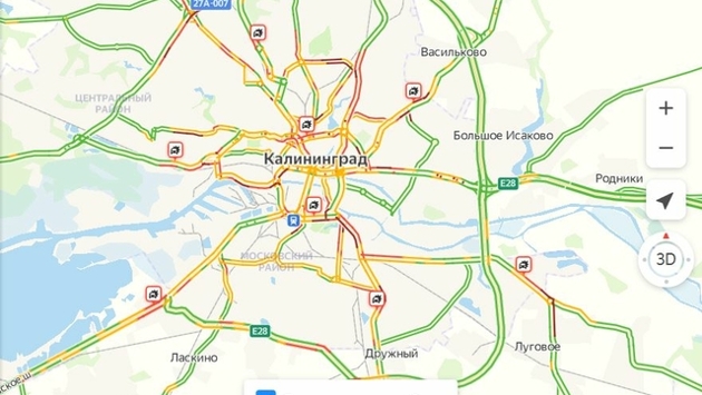В Калининграде в субботу, 25 декабря, во всем городе, можно сказать, дезорганизовано все дорожное движение. Причина – выпавший снегопад, скользкие дороги. По состоянию на 15 часов, в городе наблюдаются пробки в 9 баллов. Простаивают все улицы. Но это еще полбеды. Сервис «Яндекс-карты» одновременно показывает 8 аварий: Сразу три на улице Черняховского, по одной на Пролетарской, Гагарина, на Аллее Смелых, проспекте Калинина. Это не считая еще утренних ДТП, о которых мы уже сообщали: у зоопарка столкнулись автобус, троллейбус и легковушка. А чуть раньше на Горького в маршрутку врезался легковой автомобиль. В ГИБДД рекомендовали без необходимости воздержаться от поездок на автомобиле. Глава администрации Калининграда Елена Дятлова заявила, что на уборку улиц вышла вся снегоуборочная техника и все бригады дворников.