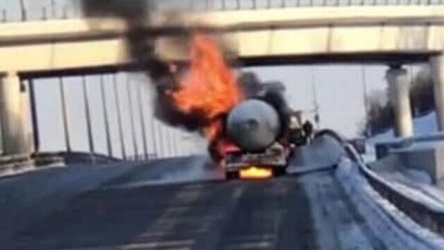 Водитель загоревшейся автоцистерны на Киевском шоссе госпитализирован с ожогами
