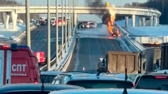 Столб пламени: кадры полыхающей цистерны с газом в Москве