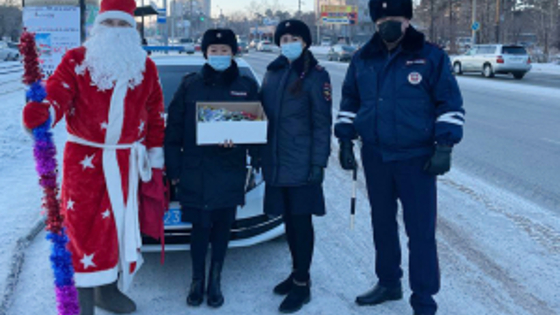 В столице Бурятии сотрудники ГИБДД ежегодно поздравляют автомобилистов с праздником. Вместе с теплыми пожеланиями водителей призывают к соблюдению Правил дорожного движения, внимательности и осторожности за рулем. Праздничный экипаж в составе сотрудников ГИБДД и Деда Мороза поздравил водителей, пассажиров и пешеходов с наступающим Новым годом и подарил им подарки. Участники акции были приятно удивлены такой необычной встрече с автоинспекторами. Водители и пассажиры с удовольствием пели песни и рассказывали стихи на новогоднюю тематику. Самые маленькие участники дорожного движения получили в подарок от Деда Мороза яркие светоотражающие повязки. Все участники мероприятия признались, что праздничная акция подняла им предновогоднее настроение.