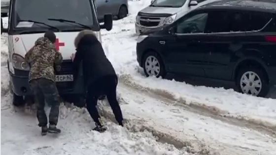 Автомобиль скорой помощи застрял в одном из дворов Рязани