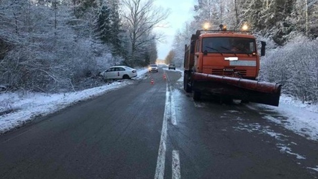 В Краснознаменском городском округе из-за гололёда Škoda врезалась в «КамАЗ». Об этом сообщает ГИБДД региона.