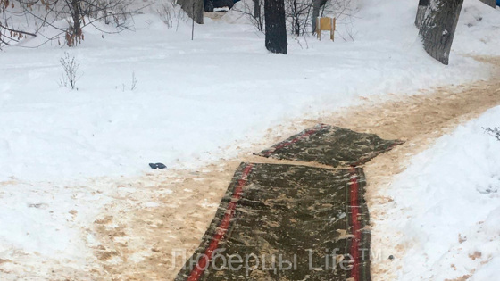 На опубликованной фотографии в одном из дворов города местные жители решили положить на дорожки, усыпанные снегом, коврики. «Нанотехнологии в Люберцах», — подписали пост модераторы сообщества.