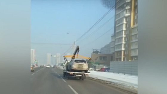 Эвакуатор прокатился по выделенной полосе на улице Шахтеров в Красноярске