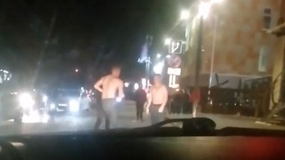 Бойцов вскоре разнимают другие, одетые, мужчины. И автор видео, снимавший ролик из машины, уезжает. Что послужило причиной конфликта неизвестно.