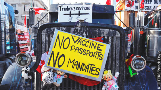 Протестное движение канадских дальнобойщиков, которое началось после того, как 15 января правительство Трюдо ввело требование обязательных ковид-паспортов при пересечении границы с США, набирает силу и грозит перерасти в общемировое. К движению «Конвой свободы» уже присоединяются Франция, Испания, Италия, Бельгия, Нидерланды, Литва, Чехия. На 14 февраля протестующие ЕС запланировали общий сбор-встречу в Брюсселе – столице Евросоюза.