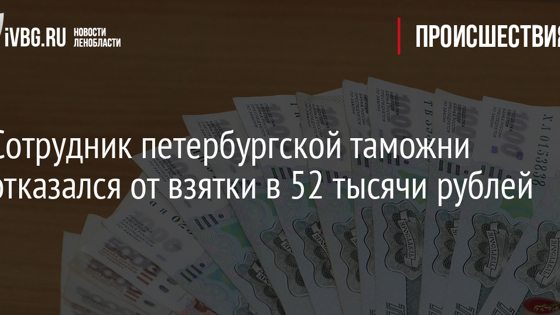 Сотрудник петербургской таможни отказался от взятки в 52 тысячи рублей