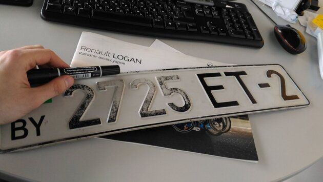 В идеальном варианте госномер надо снять с машины, вымыть и высушить, затем обезжирить, заклеить белые места малярным скотчем и после этого приступить к покраске. Подрисовать цифры можно и перманентным маркером, но долго такие номера не прослужат. Самый лучший вариант в данном случае – это водостойкая краска-эмульсия.