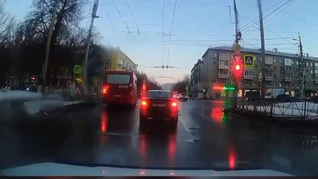 В центре Рязани маршрутка проехала на «красный» по встречной полосе