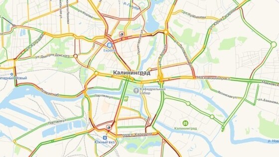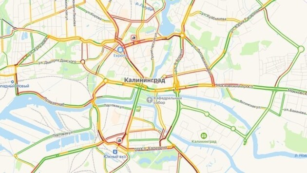 Калининград вечером в пятницу, 25 февраля , встал в восьмибалльных пробках. Информацию опубликовал сервис «Яндекс.Карты».
