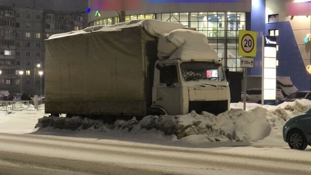 Так, на проспекте Строителей, в районе противотуберкулезного диспансера, всегда припаркованы большегрузы. В данном месте стоянка запрещена в период с 23.00 до 6.00 утра. Однако водители все-равно оставляют крупногабаритные машины не только на сутки, а порой на несколько недель и месяцев. Это заметно по скоплению снега вокруг.