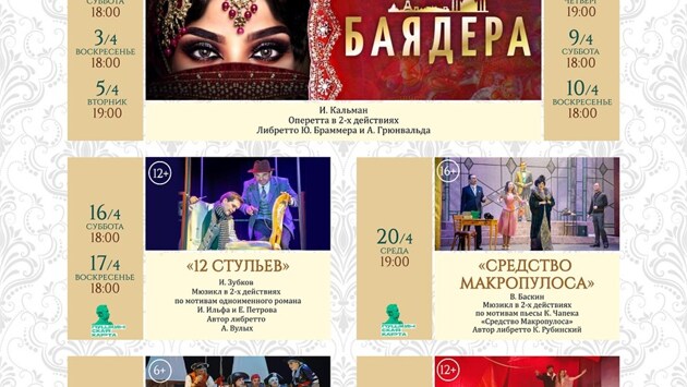 Рязанский музыкальный театр. Репертуар на апрель 2022 года.