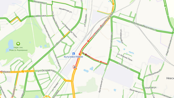 В Калининграде на ул. Невского днём в среду, 6 апреля, машины встали в пробке. Об этом говорят данные сервиса «Яндекс. Карты».