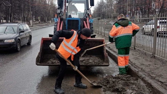 Так, к уборке городских магистралей были привлечены сотрудники АО «Дорэкс». С помощью коммунальной техники проводилась очистка от грязевых и песчаных наносов на дорогах по Марпосадскому шоссе, на Московском проспекте, ул. Калинина, Калининском мосту, и др.