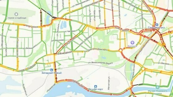 Движение также затруднено на Гвардейском и Ленинском проспектах, а также на улицах Правая набережная, Портовая, Кутузова, Шевченко, Черняховского, Озерова, Леонова, Горького, Азовского и 9 Апреля. На Советском проспекте образовался затор протяжённостью два километра. О ДТП не сообщается.