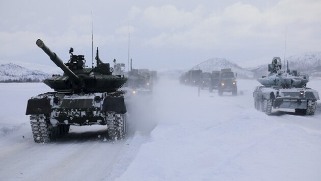 В посёлке Корзуново прошли тренировки парадных колонн военной техники Северного флота