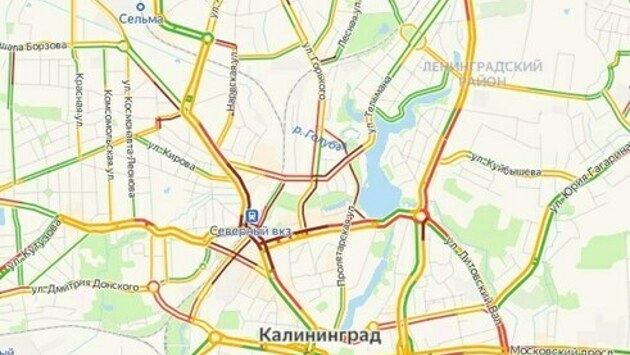 В Калининграде на Советском и Московском проспектах образовались двухкилометровые пробки. Информацию опубликовал сервис «Яндекс.Карты».