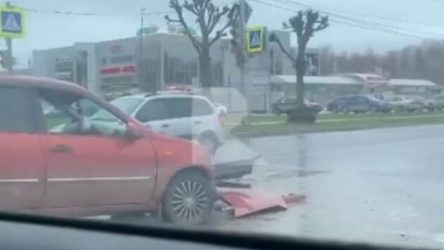 Авария случилась в четверг, 21 апреля. Столкнулись Hyundai Sonata и Lada Kalina. У Lada оторвало капот, а второй автомобиль отлетел в дерево.
