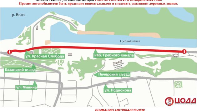 Набережную Гребного канала временно перекроют 26, 27 и 28 апреля. Об этом ИА «Время Н» сообщили в Центре организации дорожного движения Нижнего Новгорода.