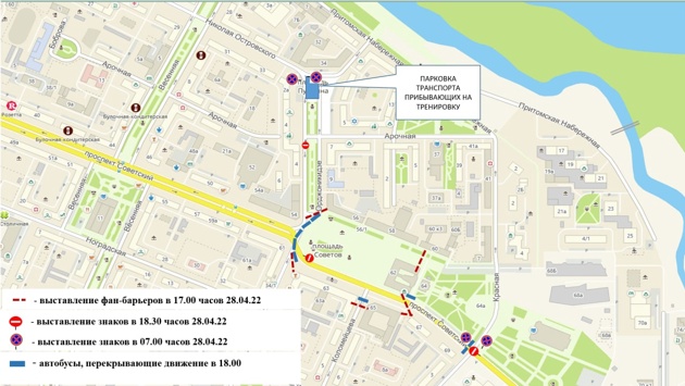 В этот день с 18:30 до 21:00 будет ограничено движение транспорта по проспекту Советскому от улицы 50 лет Октября до улицы Красная.
