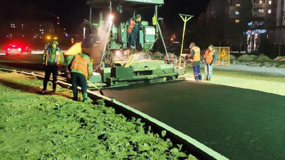 Сегодня ночью (28 апреля. – Прим. ред.) подрядчик приступил к асфальтированию кольцевой развязки. При хорошей погоде полностью уложат нижний слой за пять ночей.