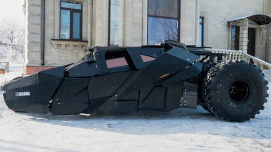 Житель Казахстана выставил на продажу самоделку, которая представляет собой реплику Бэтмобиля — машину Tumbler из трилогии Кристофера Нолана, сообщает Тарантас Ньюс. Автомобиль отличается от оригинала необычно расположенными передними колёсами, а также сразу четырьмя огромными колёсами на задней оси.