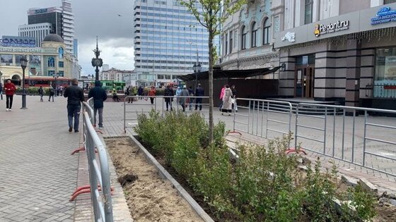По их данным, для высадки насаждений убрали часть плитки и стоявшие там лавочки. Вместо них разместили новые, вокруг посаженных деревьев.