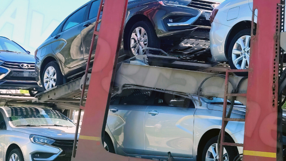 Большую партию новых Lada Vesta сфотографировали на автовозе