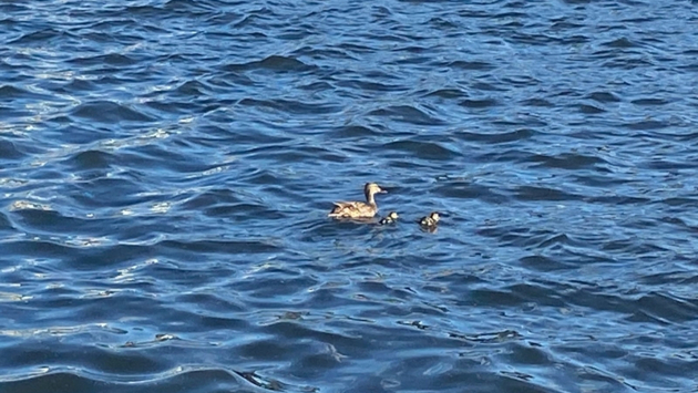 Отмечается, что после этого утка успокоилась и вместе с утятами поплыла дальше.