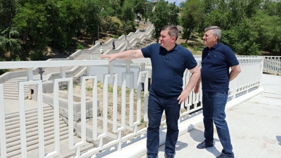 Андрей Бочаров и Владимир Марченко также оценили ход реконструкции лестницы, ведущей к новому пешеходному мосту через рокадную дорогу, – объект объединяет 2 террасы в единый комплекс. Напомним, задачу по приведению спуска в порядок глава региона поставил в октябре 2021 года.