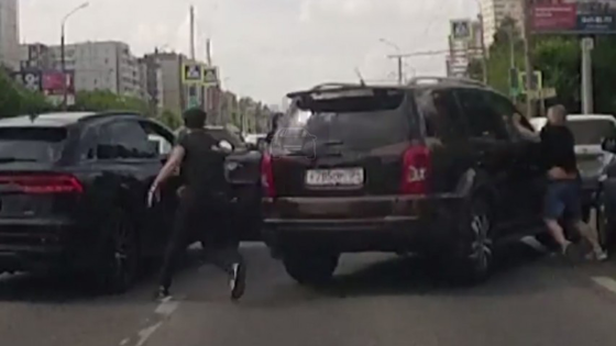 Видео конфликта со стрельбой на пр. Комсомольский опубликовали в группе социальной сети “ВКонтакте” “ЧП Красноярск”. В ситуации разбираются сотрудники ГУ МВД России по Красноярскому краю. На записи запечатлено, как на пр. Комсомольском автомобиль Audi Q8 в манере опасного вождения догоняет автомобиль SsangYong Rexton. Затем пассажир Audi, прицеливаясь, пытается выстрелить из предмета, похожего на оружие. Далее водитель и пассажир Audi наносят удары по боковым стёклам SsangYong, пытаясь попасть в салон. Сообщений и заявлений в полицию не поступало. Устанавливаются обстоятельства случившегося и личности мужчин. Фото: © vk.com/kraschp
