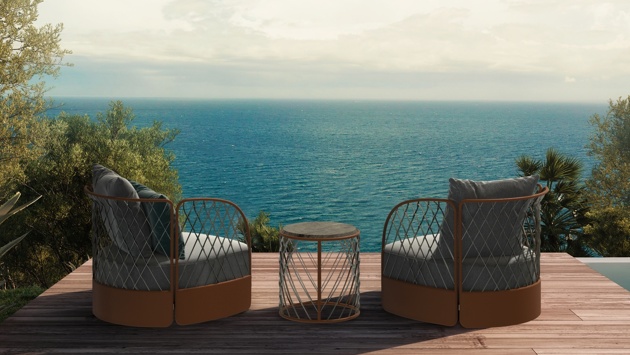 Собственная интерьерная линейка появилась у Bentley в 2013 году. В 2021-м в коллекцию Home вошли обеденный стол, софа, кресло-диван и рабочий стол с деревянным каркасом длиной около трёх метров, для которых предложили декор с эффектом Degradé. Одновременно Bentley представила тканевую обивку MARM \ MORE из мраморной пудры. А теперь этот эксклюзивный материал использован в первой для Bentley коллекции уличной мебели.