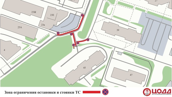 Парковаться запретят на участках дороги у дома № 45. Автомобили, припаркованные в зоне действия запрещающего знака, будут перемещены на охраняемую стоянку.