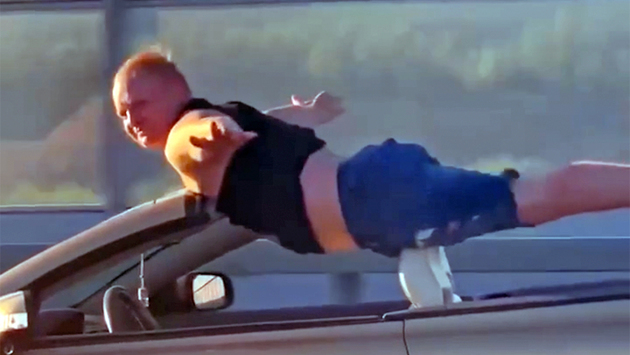 Видео: водитель кабриолета Volvo прокатился на машине в позе «Супермена»