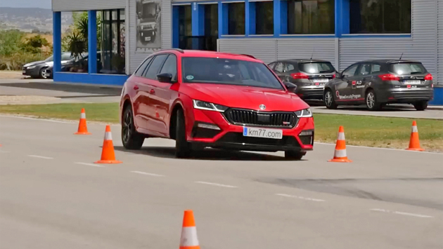 Испанское издание km77.com опубликовало видео очередного «лосиного теста». На этот раз журналисты проверили манёвренность гибридной Skoda Octavia Combi RS. «Заряженный» универсал не смог справиться с испытанием. Однако эксперты сделали вывод, что технические характеристики автомобиля не при чём. Виной всему стали покрышки Bridgestone, которые не смогли обеспечить достаточно сцепления с дорожным полотном во время резких перестроений.