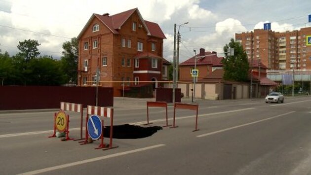 На улице Урицкого прямо посреди проезжей части образовался огромный провал. Яму диаметром более трех метров автомобилисты объезжают с опаской. Такая западня может целиком поглотить легковую машину, не говоря уже о транспорте поменьше.