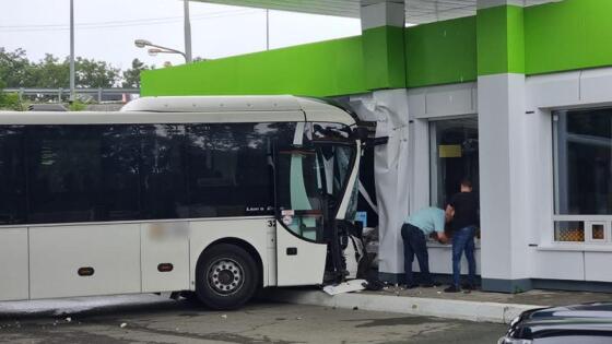 Установлено, что, не справившись с управлением, 44-летний водитель автобуса марки MAN въехал в здание автозаправочной станции.