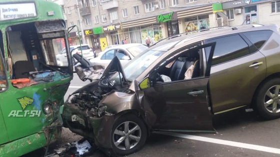 Водителя Nissan Murano госпитализировали после ДТП с троллейбусом в Новосибирске