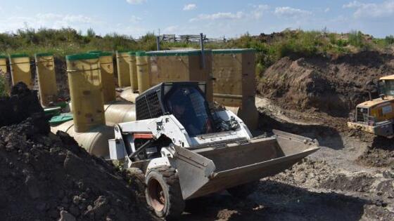 «Работы выполнены более чем на 50 %. На стройплощадке залиты бетонные фундаменты, установлены четыре из шести стеклопластиковых емкостей для очистки стоков. В данный момент производится их послойная отсыпка на высоту до трех метров, ведется монтаж насосов, запорной арматуры и трубопроводной обвязки», – рассказал руководитель Центра развития коммунального комплекса Алексей Пузик. Строительство в поселке Первоманск современных канализационно-очистных сооружений стало частью краевой программы. Мощность проекта – 240 куб. м в сутки, он рассчитан на обслуживание канализационной системы всего поселка Первоманск – как централизованного водоотведения, так и септиков частного сектора. На сооружениях будет установлено современное технологическое оборудование с мембранной системой очистки сточных вод. Оно увеличит качество очистки, а также позволит подключать новых потребителей в будущем. Как сообщили в министерстве промышленности, энергетики и жилищно-коммунального хозяйства Красноярского края, строительство сооружений будет завершено до конца сентября. В ближайшие полтора месяца специалистам предстоит установить колодцы и проложить трубопровод, который соединит очистные сооружения с существующим канализационным коллектором. Добавим, что новые очистные сооружения за счет краевого бюджета возводятся также в Боготоле. В ближайших планах – старт аналогичного проекта в поселке Элита Емельяновского района. Ранее «ФедералПресс» рассказывал о том, как инспекторы министерства экологии и рационального природопользования Красноярского края пресекли незаконные сливы канализации в реку. Фото: пресс-служба правительства Красноярского края