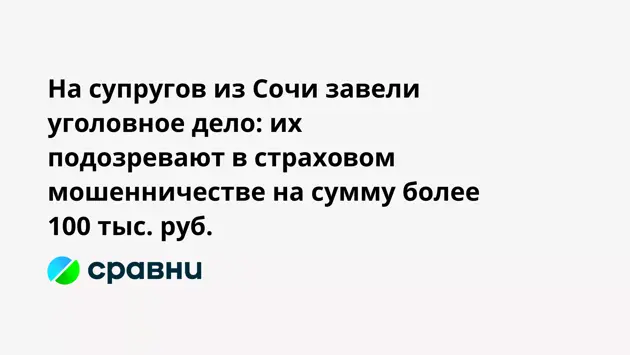 На супругов из Сочи завели уголовное дело: их подозревают в страховом мошенничестве на сумму более 100 тыс. руб.