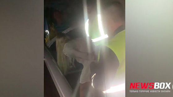 На кадрах ролика запечатлен момент задержания женщины. Сотрудникам ДПС удалось усадить ее в машину, однако там она начала бить ногами по потолку автомобиля и пытаться выйти.