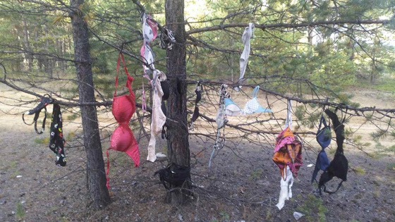Житель ХМАО пошел в лес за грибами и обнаружил дерево, увешанное лифчиками. Пост с сообщением о необычной находке опубликовал анонимный автор в группе «[ХМ] Типичный Ханты-Мансийск» в социальной сети «ВКонтакте».