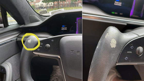 Один из пользователей приобрел Tesla Model S в «дальнобойной» и не самой дешевой модификации Long Range. Спустя всего 24 тысячи миль (38,6 тысячи километров) пробега он обнаружил, что с одной из ручек руля электрокара слез крупный кусок отделки. Об аналогичной проблеме рассказали хозяин топовой Model S Plaid, пробег которой вдвое меньше, и еще один клиент, успевший наездить на своей «Тесле» только четыре тысячи миль (6,4 тысячи километров).