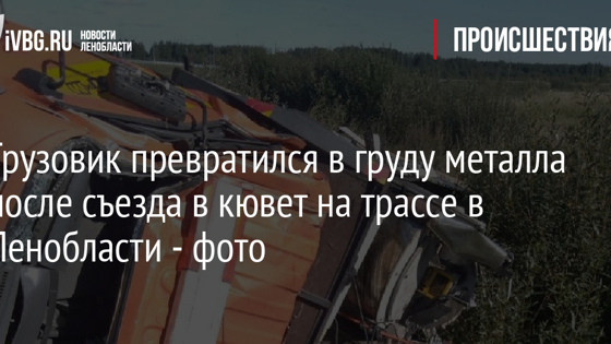 Грузовик превратился в груду металла после съезда в кювет на трассе в Ленобласти - фото