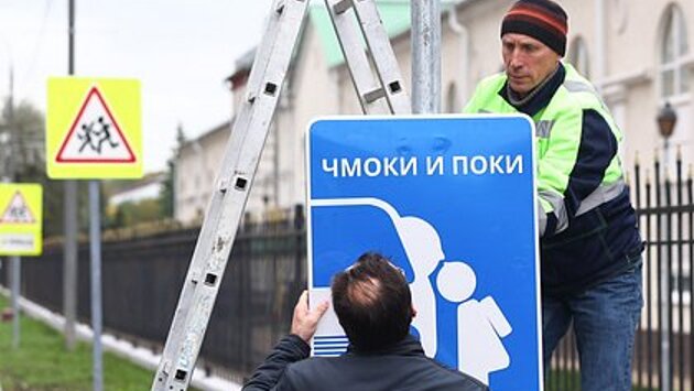 Блогер Лебедев установил дорожный знак «Чмоки и поки» возле школы в Подмосковье