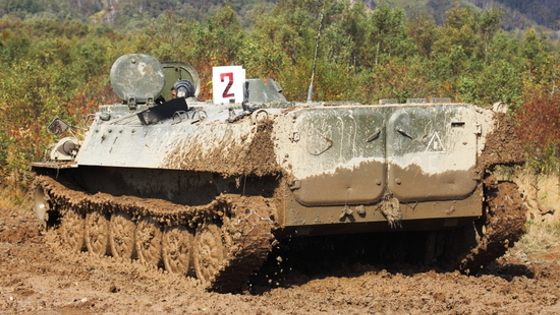 Мобилизованные военнослужащие на Сахалине совершенствуют навыки вождения боевых машин в сложных условиях местности