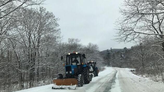 Как сообщили специалисты Примавтодора, ситуацию осложняют большегрузы, которые не стали дожидаться окончания обработки дороги и застряли на перевале, в результате чего создали помехи работе снегоуборочной техники. Здесь же дорогу перегородила и фура, которую развернуло на скользкой дороге. На месте работают и сотрудники МЧС, которые забирают граждан с рейсовых автобусов и перевозят их до автобусов администрации муниципального образования, которые находятся у основания перевала. Также производится и буксировка автомобилей, которые не могут самостоятельно выбраться из снежных заносов. Специалисты отметили, что при необходимости будет развернут пункт обогрева. Ранее «ФедералПресс» писал, что в результате сильных осадков движение по Дальнегорскому перевалу было закрыто. Фото: Правительство Приморского края