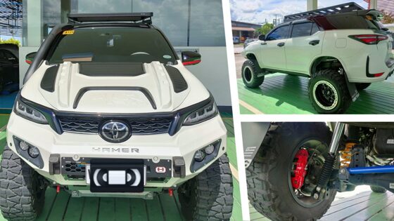На этих изображениях показано, что когда-то было Toyota Fortuner, прежде чем кто-то решил, что это может быть связано с серьезной модернизацией подвески и внедорожным снаряжением. Трансмиссия и кабина остались в основном стандартными, в то время как внешний вид отличается усиленным передним бампером с лебедкой, багажником для экспедиций и защитой днища. Шноркель и подъемник подвески позволяют внедорожнику с кузовом на раме преодолевать глубокие воды. Однако неясно, настоящие воздухозаборники капота или подделка. Большие колеса, обутые во вседорожные шины Nitto, расширяют колею, а в подвеске используются новые пружины и амортизаторы. Автоматические подножки делают посадку и выход из автомобиля удобными. Внутри передние сиденья со встроенными подголовниками и красной кожаной отделкой — единственная новая вещь. Неизвестно, был ли модифицирован двигатель. По всей вероятности, внедорожник по-прежнему использует дизельный двигатель мощностью 204 л.с. через шестиступенчатую автоматическую коробку передач.
